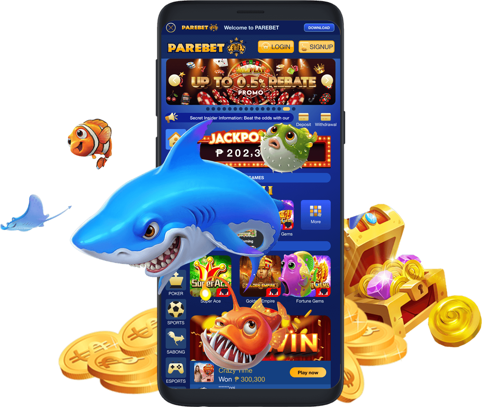 PareBet offers a wide variety of games, including slots, live casino games (such as Blackjack, Baccarat, and Roulette), sports betting, table card games, fishing games, lottery, and esports. Our extensive game library ensures there’s something for every type of player.